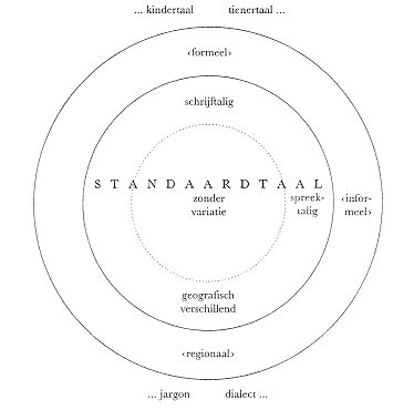 inclusief variatie. De kleinste cirkel omvat de standaardtaal voorzover er