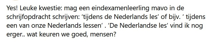 - Dit kan vervolgens aanleiding geven tot een discussie. Daartoe is ook dit fragment, afkomstig van een groep op Facebook, relevant: