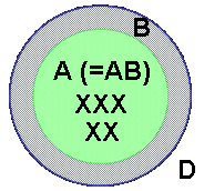 Het gearceerde deel ab geeft de verzameling dingen weer die