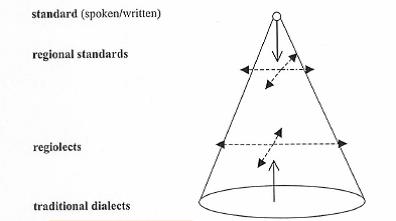 in de twee bovenste lagen: de standaardtaal en regionale standaarden. Deze