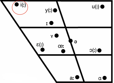 in het klinkerdiagram (Bron: Gussenhoven 1992: 47)