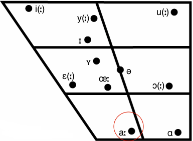 in het klinkerdiagram (Bron: Gussenhoven 1992: 47)
