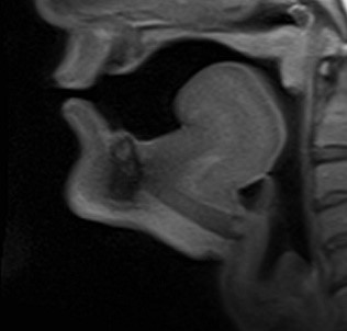 wordt het tonglichaam naar achteren en omhoog bewogen, terwijl de tongpunt laag