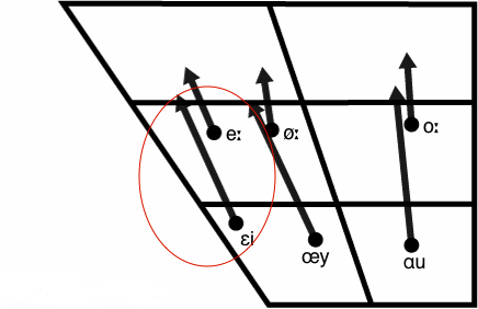 in het klinkerdiagram (Bron: Gussenhoven 1992: 47)
