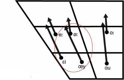 in het klinkerdiagram (Bron: Gussenhoven 1992: 47)