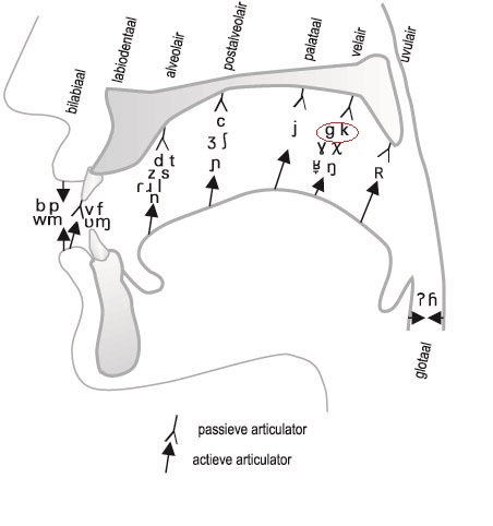 stemhebbende velaire plofklank. Nederlandse stemloze plofklanken hebben een