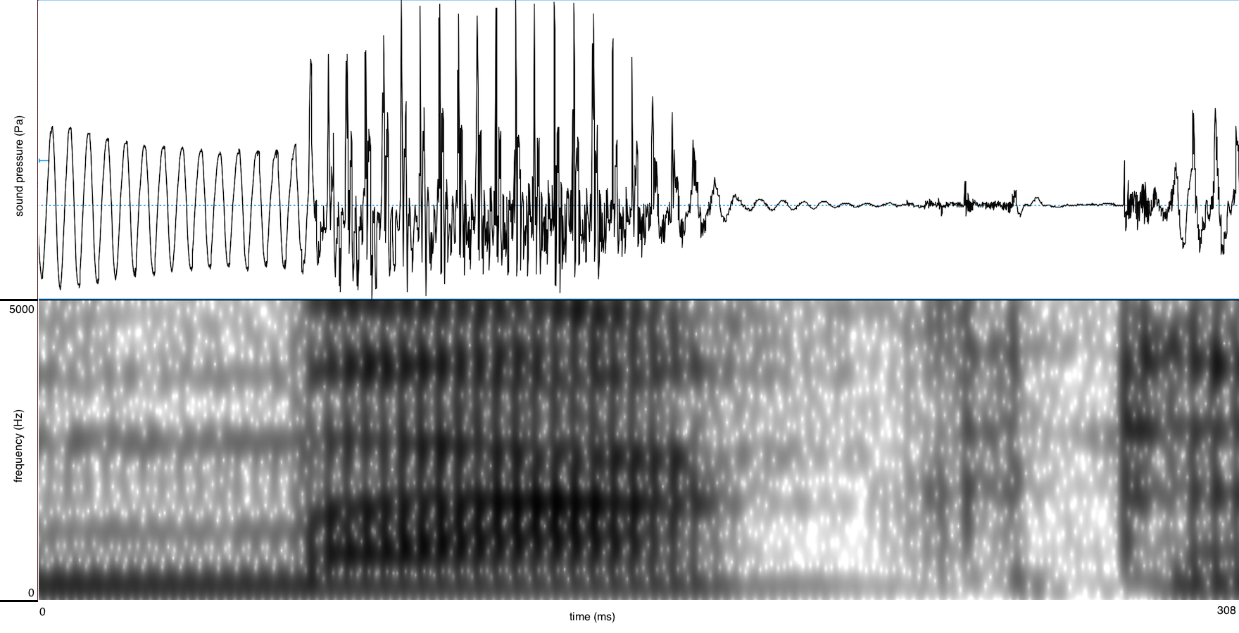 ms. Bij stemloze plofklanken begint de stembandtrilling pas op het