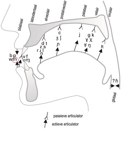 articulatieplaatsen en bijhorende klassen van medeklinkers in het