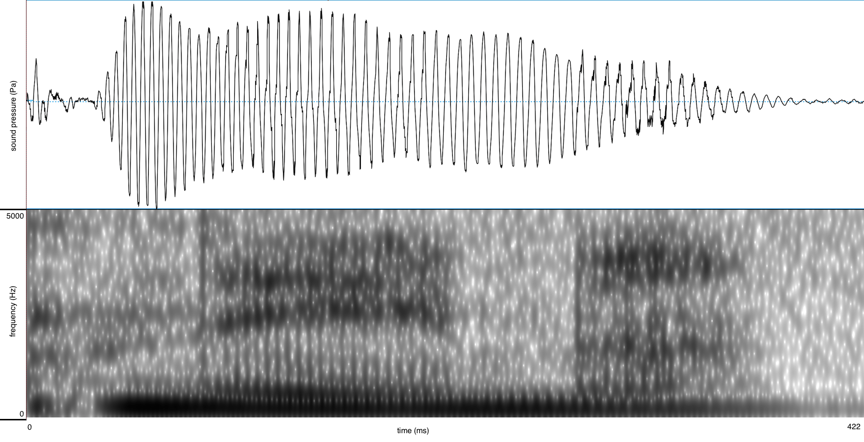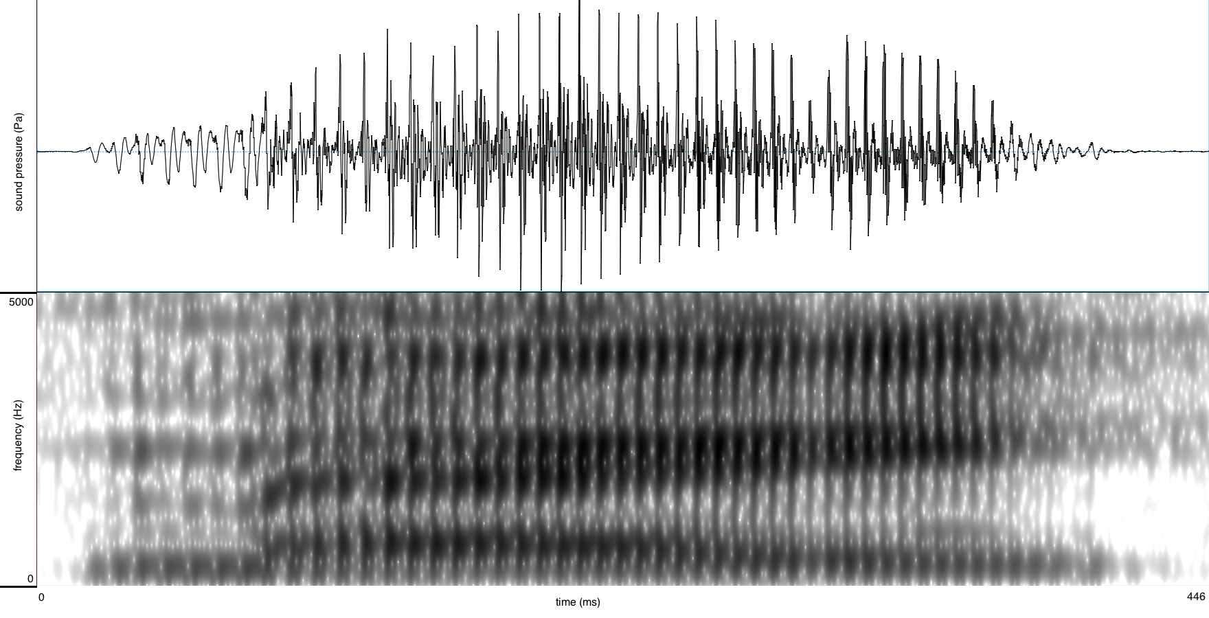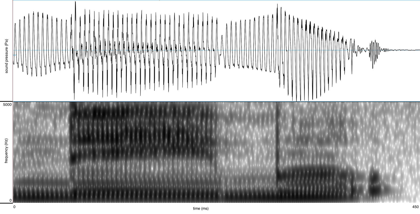 Tabel 2. Geluidsbestanden, golfvormen en spectrogrammen voor /m/ in