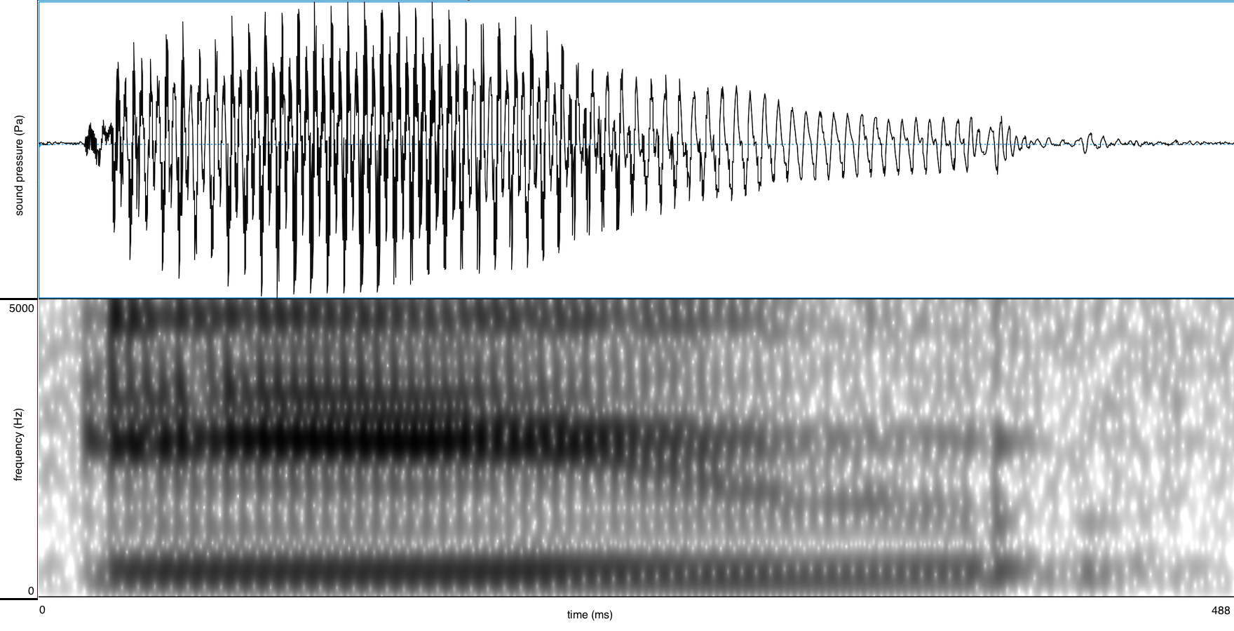 gespecificeerd als [+hoog, –laag, +gespannen, +rond, –achter]. De klank wordt